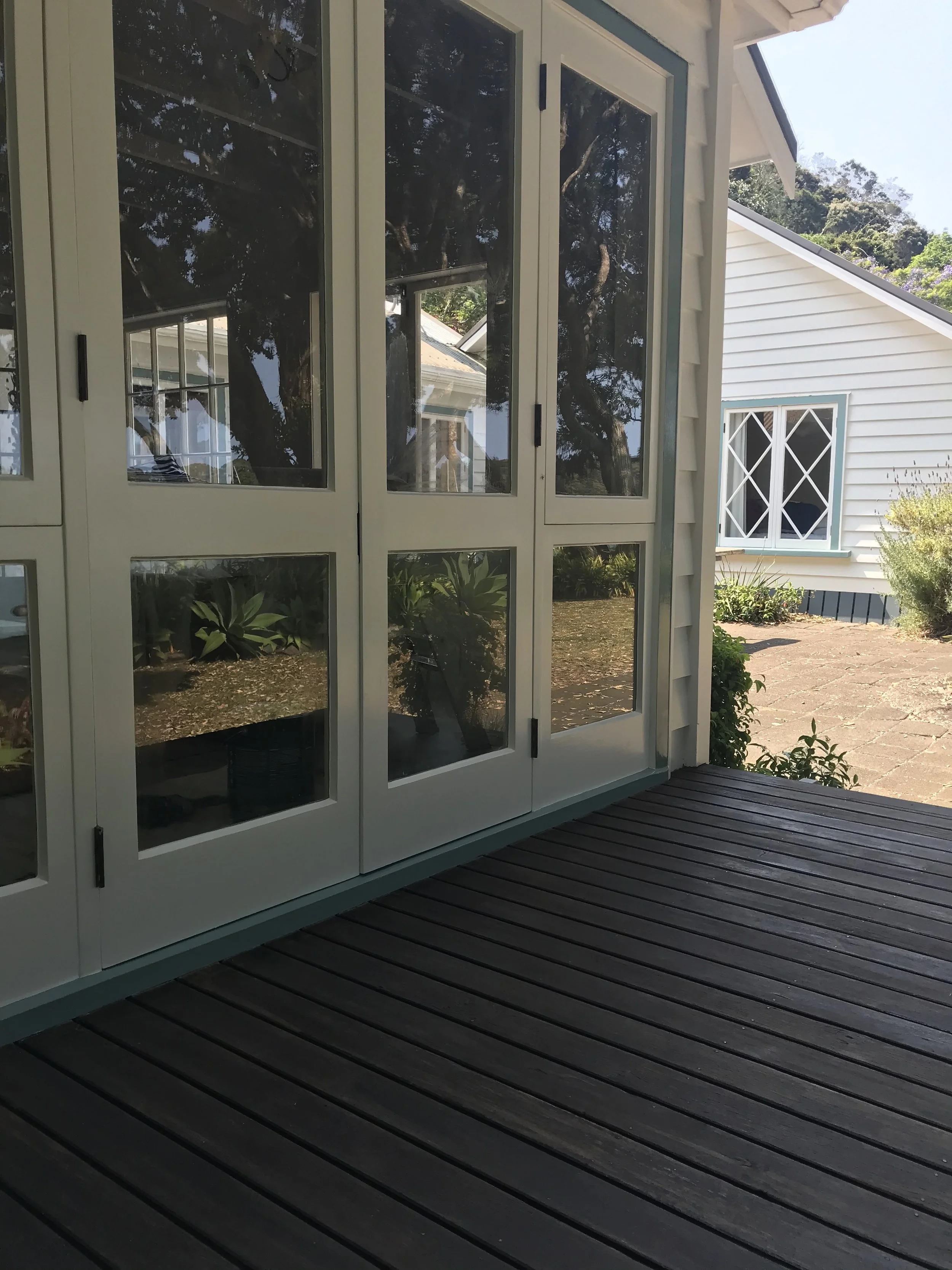 Working on Mill Bay Lodge in Mangonui involved detailed preperation and in some cases restoration of windows and doors before we applied our Resene Eco painting system. Below are some before and after photos of our work.